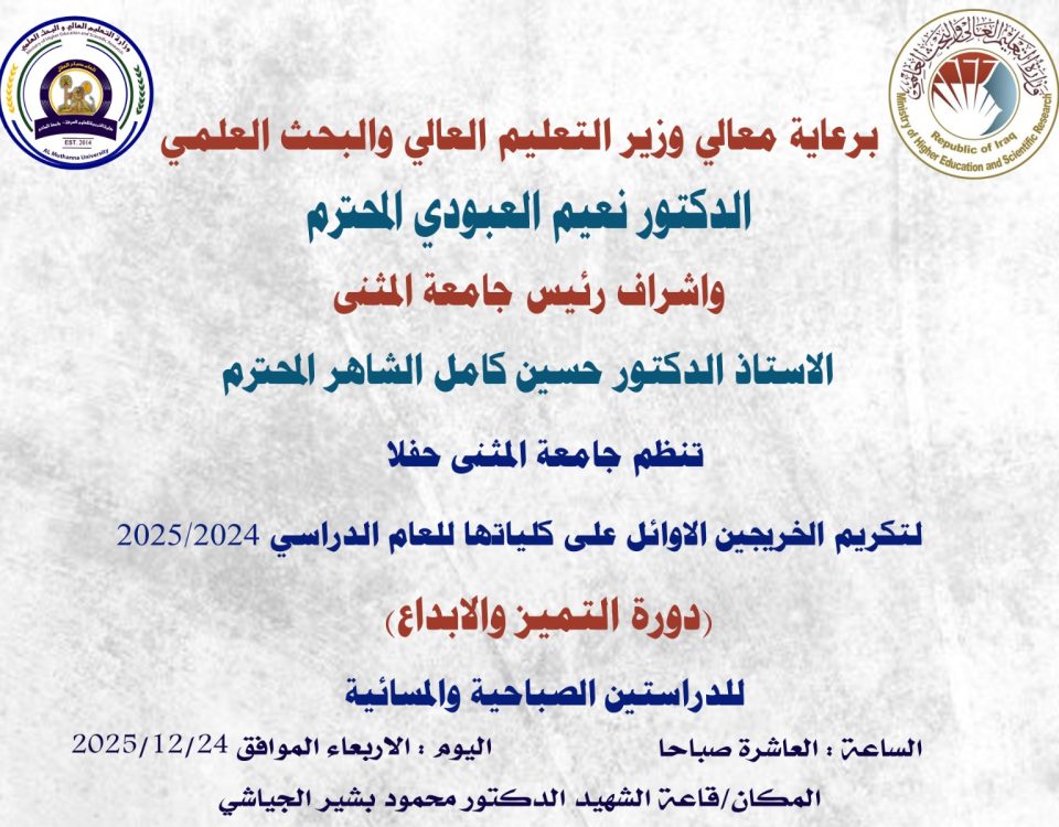 عمادة كلية التربية للعلوم الصرفة تدعوا الطلبة الأوائل لحضور حفل تكريمهم للعام 2025/2024 لحضور حفل تكريم الاوائل للعام الدراسي 2024-2025 على الطلبة المذكورة اسمائهم في رابط […]