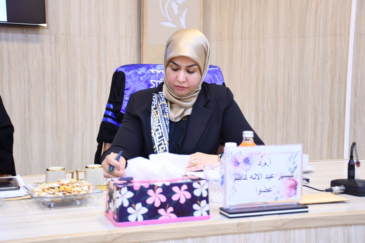السيدة عميد الكلية عضو لجنة مناقشة رسالة طالب ماجستير في جامعة القادسية