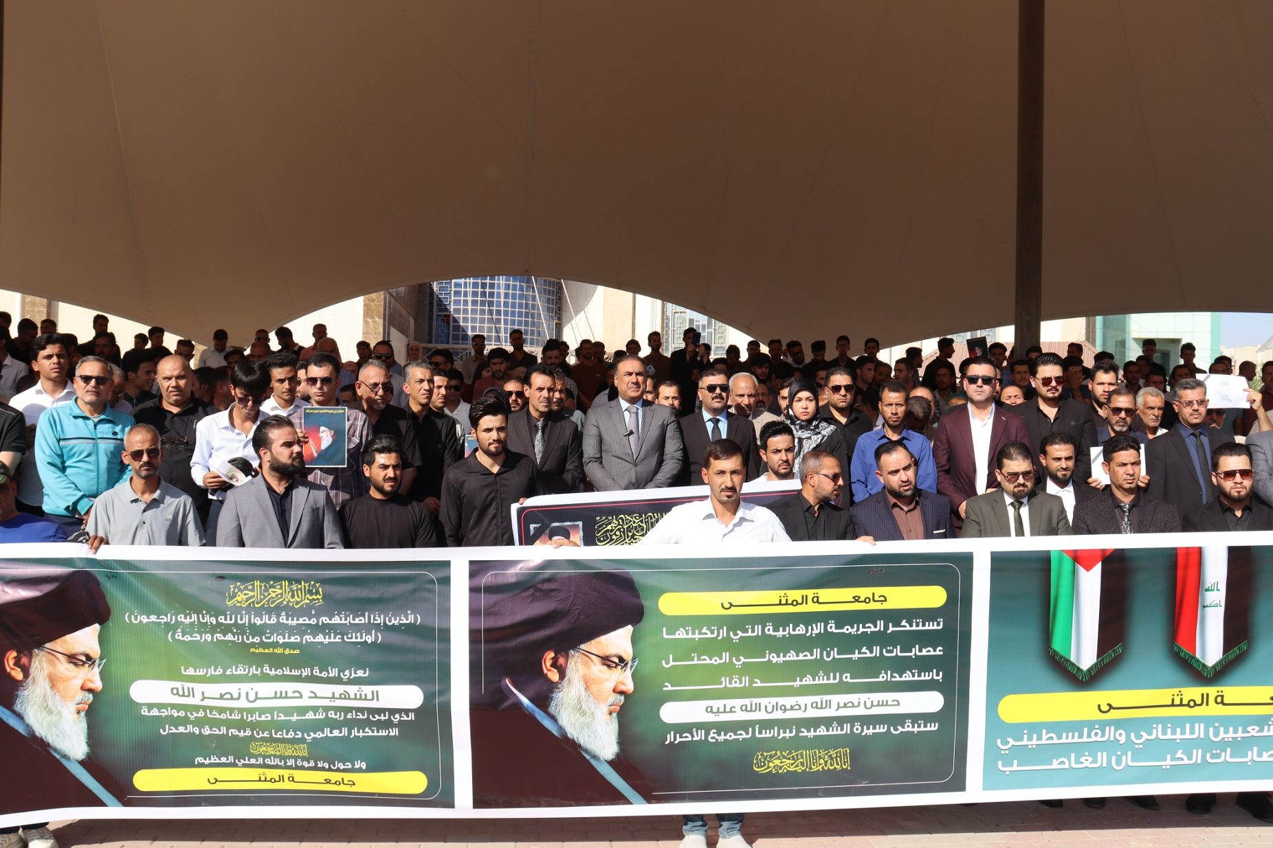 كلية التربية للعلوم الصرفة تشارك في وقفة استنكار لاغتيال حجة الاسلام والمسلمين السيد حسن نsر الله ورفاقه المجاهدين رحمهم الله