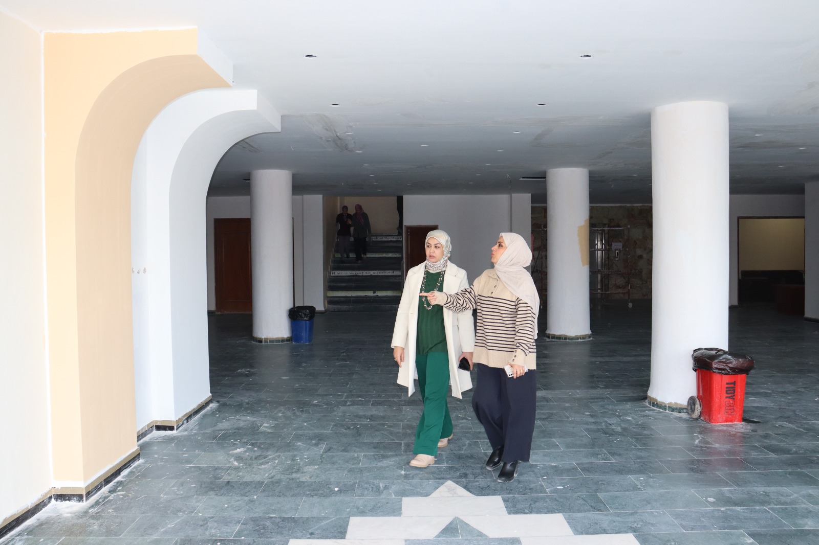 عميد الكلية تتابع سير أعمال تأهيل الطابق الأرضي في الكلية