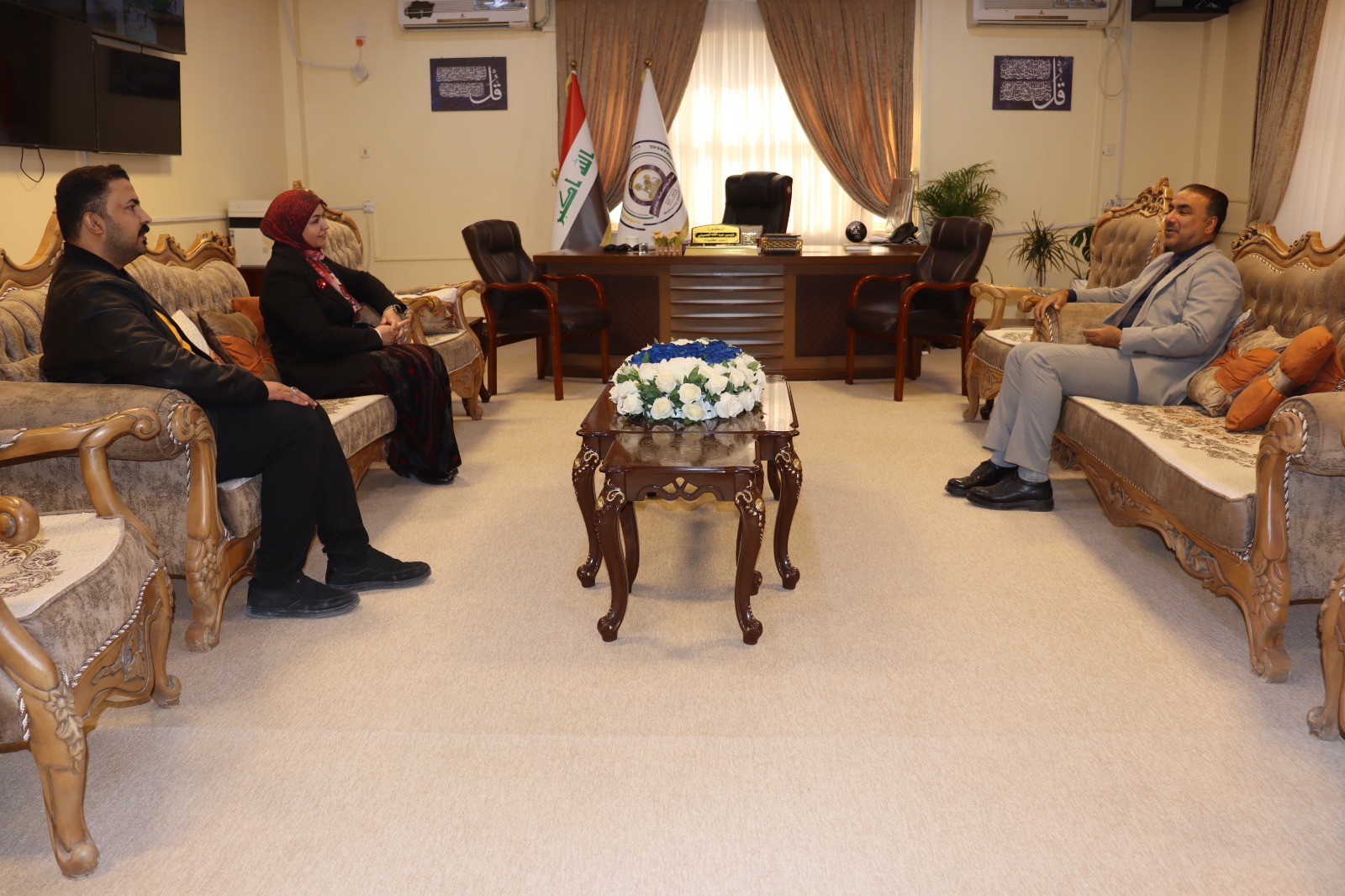 وكان في استقباله عميد الكلية، الأستاذ المساعد الدكتورة تيسير عبد الإله الحسيني، التي قدمت شرحًا مفصلًا عن خطط الكلية التطويرية والمشاريع المستقبلية.
