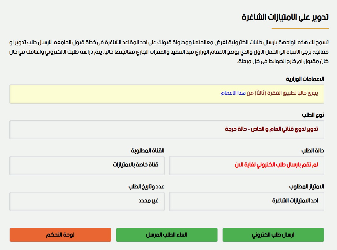 للاطلاع على كافة المقاعد الشاغرة في الجامعات غير المستقلة من قبل المتقدمين وعلى الخلفيات العلمية المطلوبة للمقاعد والتدوير إليها في حال رغبتهم بالتدوير في الجامعات غير المستقلة وحسب الرابط ادناه