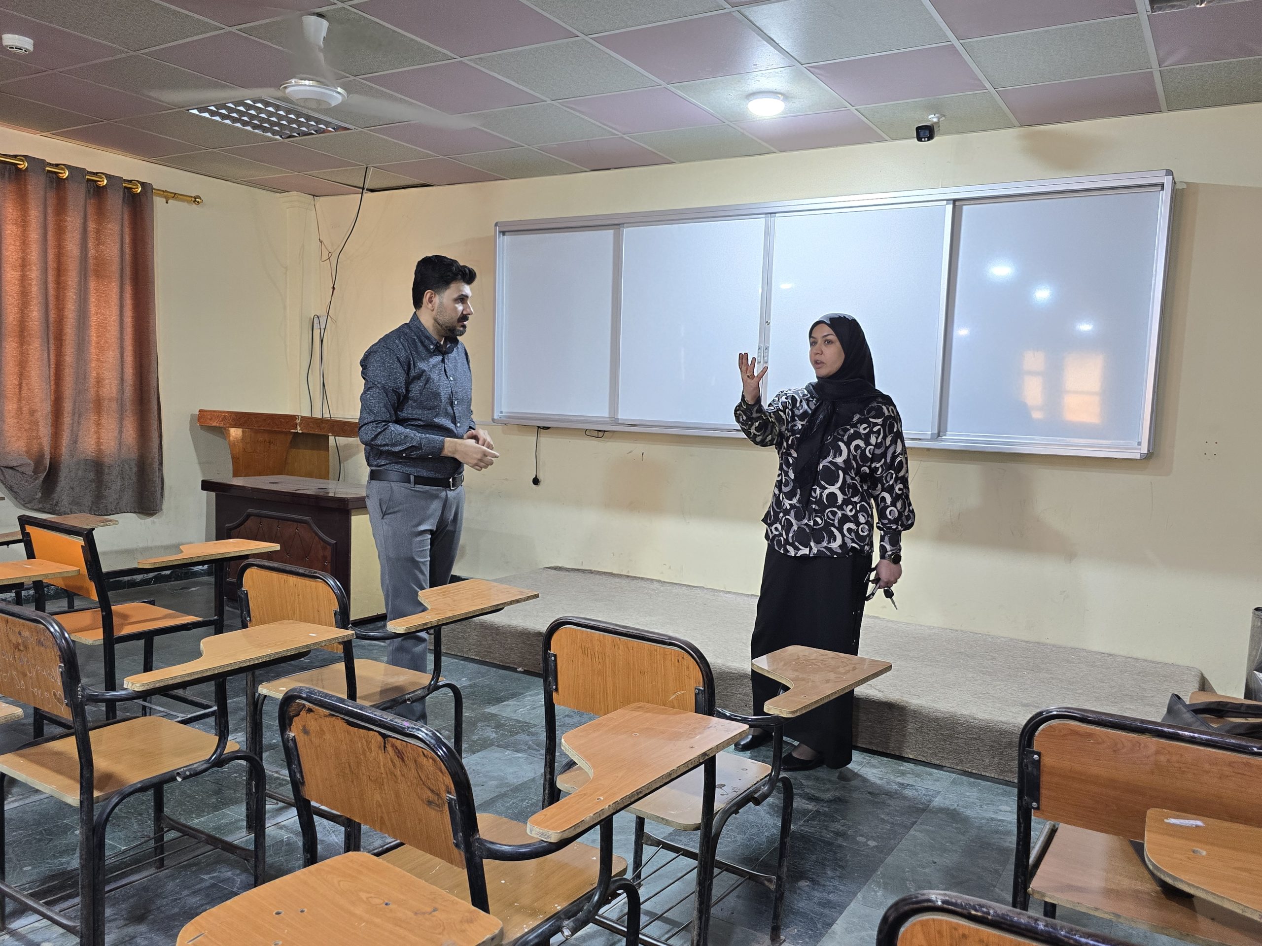 حرصاً منها على متابعة القاعات الدراسية، والأقسام العلمية، السيدة عميد كلية التربية للعلوم الصرفة بجامعة المثنى الأستاذ الدكتورة تيسير عبد الإله الحسيني ، تجري جولة تفقّدية في القاعات الدراسية وأروقة الكلية والأقسام العلمية.