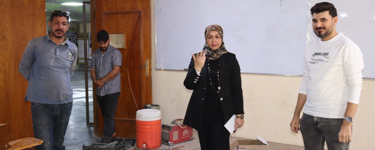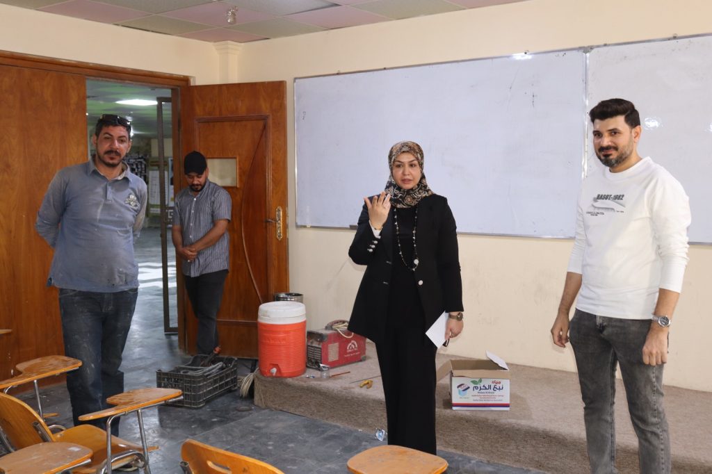 بإشراف السيدة عميد كلية التربية للعلوم الصرفة بجامعة المثنى الأستاذ الدكتورة تيسير عبد الإله الحسيني نفذت الكلية حملة واسعة لصيانة القاعات الدراسية والمختبرات العلمية ومرافق الكلية كافة بمشاركة السيد معاون العميد للشؤون الادارية ورؤساء الأقسام ومنتسبي وحدتي الصيانة والخدمات.