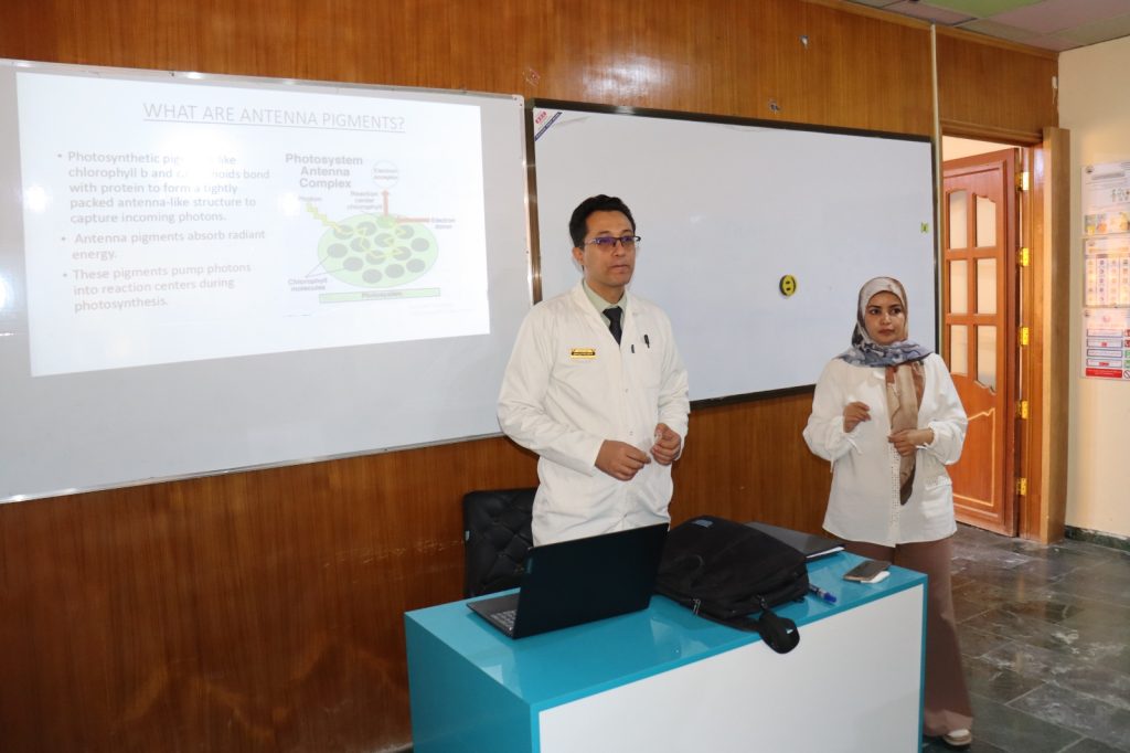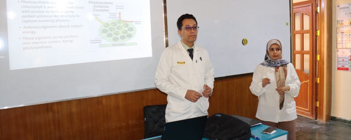 وهدفت الدورة إلى تزويد المشاركين بالمعرفة النظرية والمهارات العملية اللازمة لتحليل صبغات البناء الضوئي (الكلوروفيل والكاروتينات وغيرها) في النباتات، باستخدام الطرق الطيفية والكيميائية، لفهم كفاءة عملية البناء الضوئي وتقييم الحالة الفسيولوجية للنباتات تحت الظروف البيئية المختلفة.