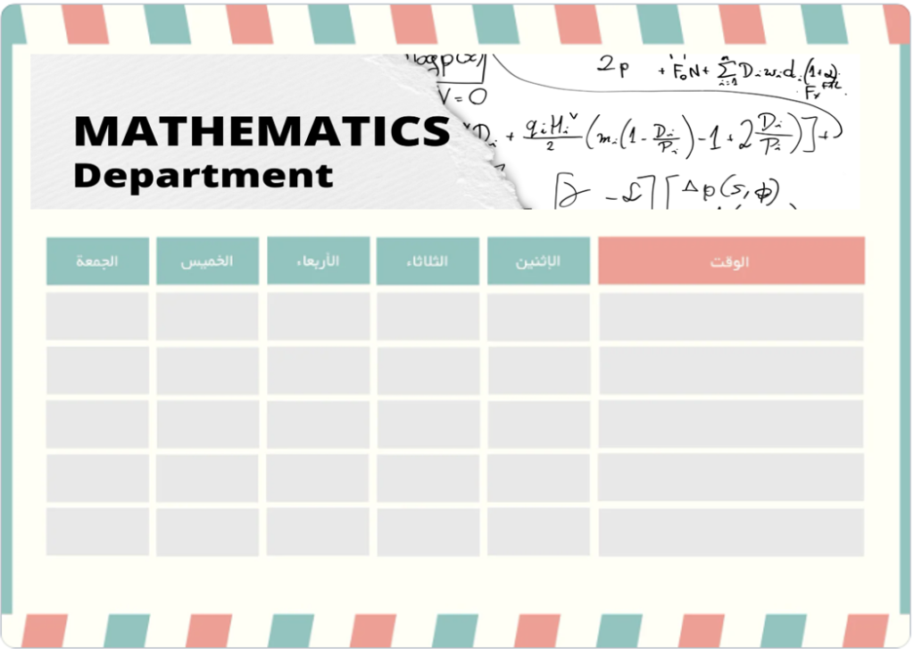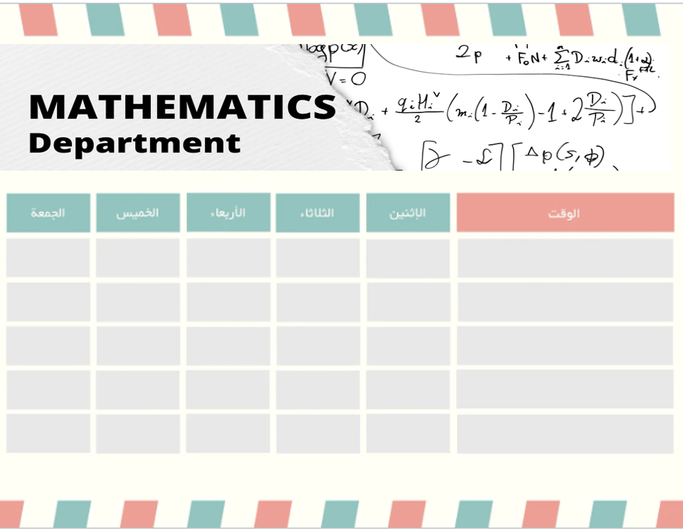 يعلن قسم الرياضيات في كلية التربية للعلوم الصرفة – جامعة المثنى، عن نشر الجدول الأسبوعي للمحاضرات للدراسة المسائية العام الدراسي 2025–2026.