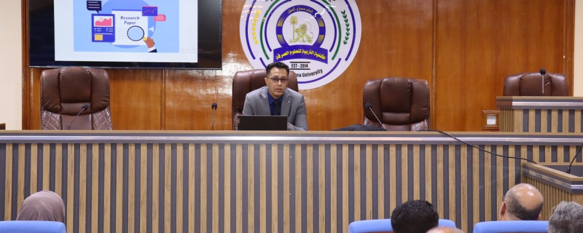 بأشراف عميد كلية التربية للعلوم الصرفة بجامعة المثنى الأستاذ الدكتورة تيسير عبد الإله الحسيني نظمت الكلية ورشة بعنوان Writing a Research Paper for an Academic Journal التي حاضر فيها معاون العميد للشؤون العلمية الأستاذ المساعد الدكتور ارشد ناجي