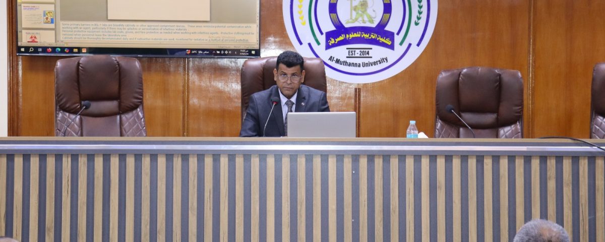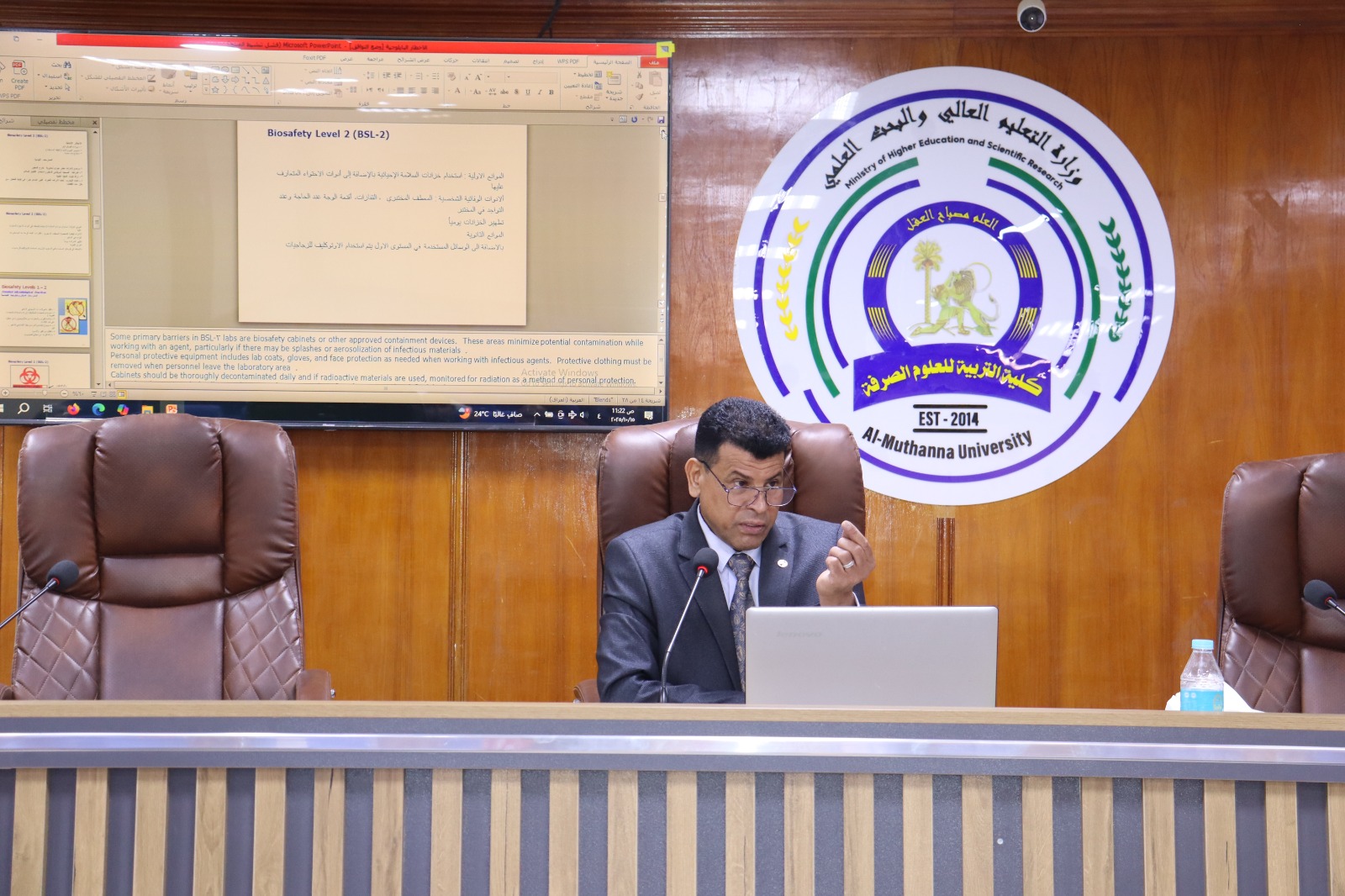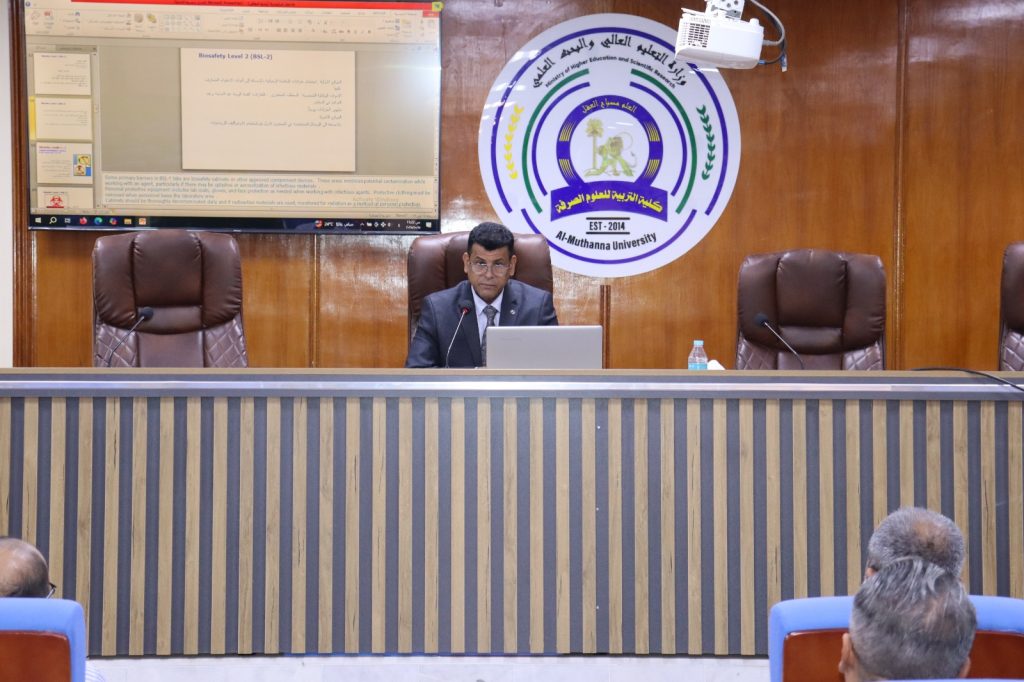 بأشراف عميد كلية التربية للعلوم الصرفة بجامعة المثنى الأستاذ الدكتورة تيسير عبد الإله الحسيني أقامت الكلية ورشة علمية بعنوان Significant Biological Hazards in Teaching Laboratories
