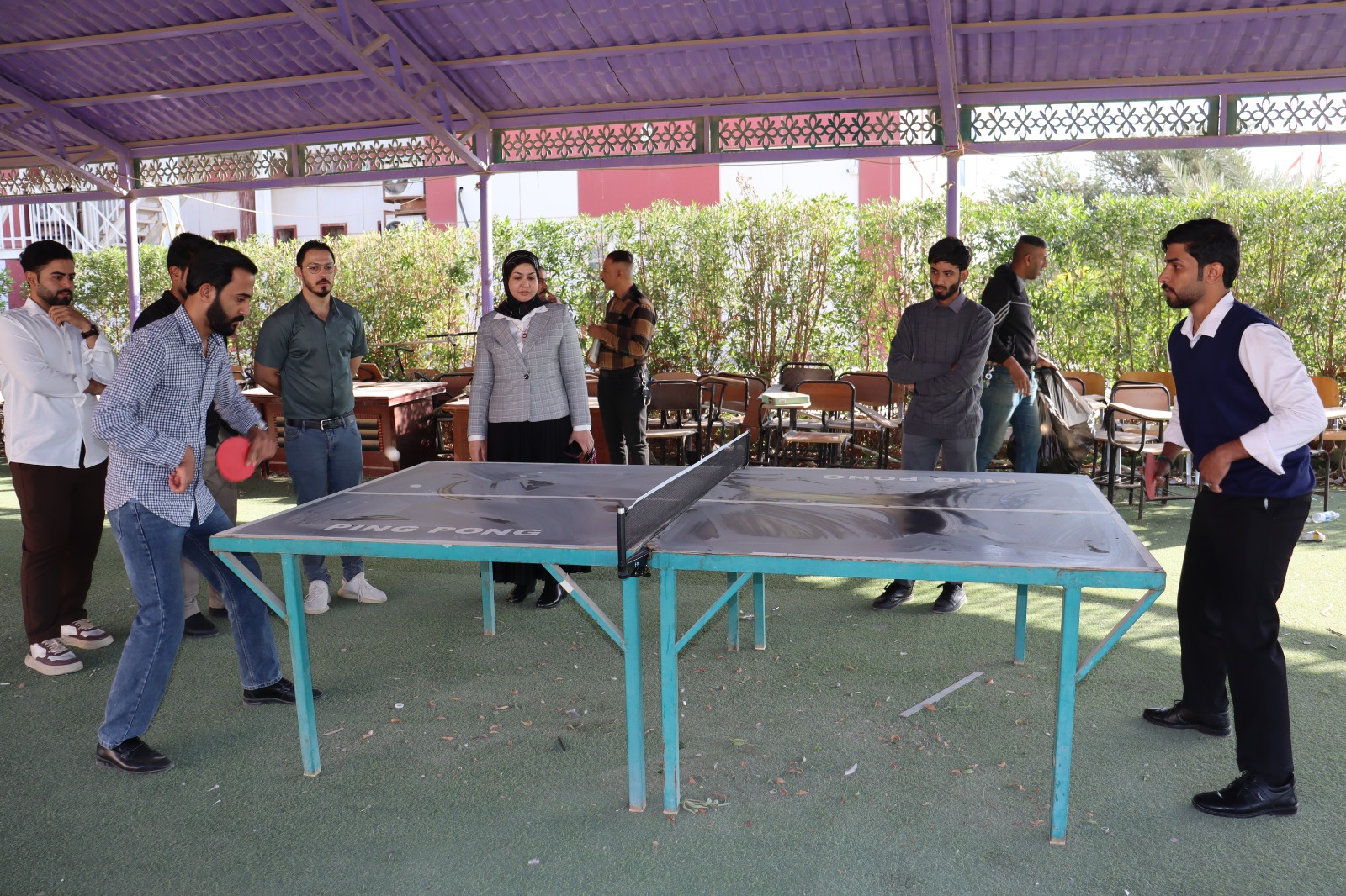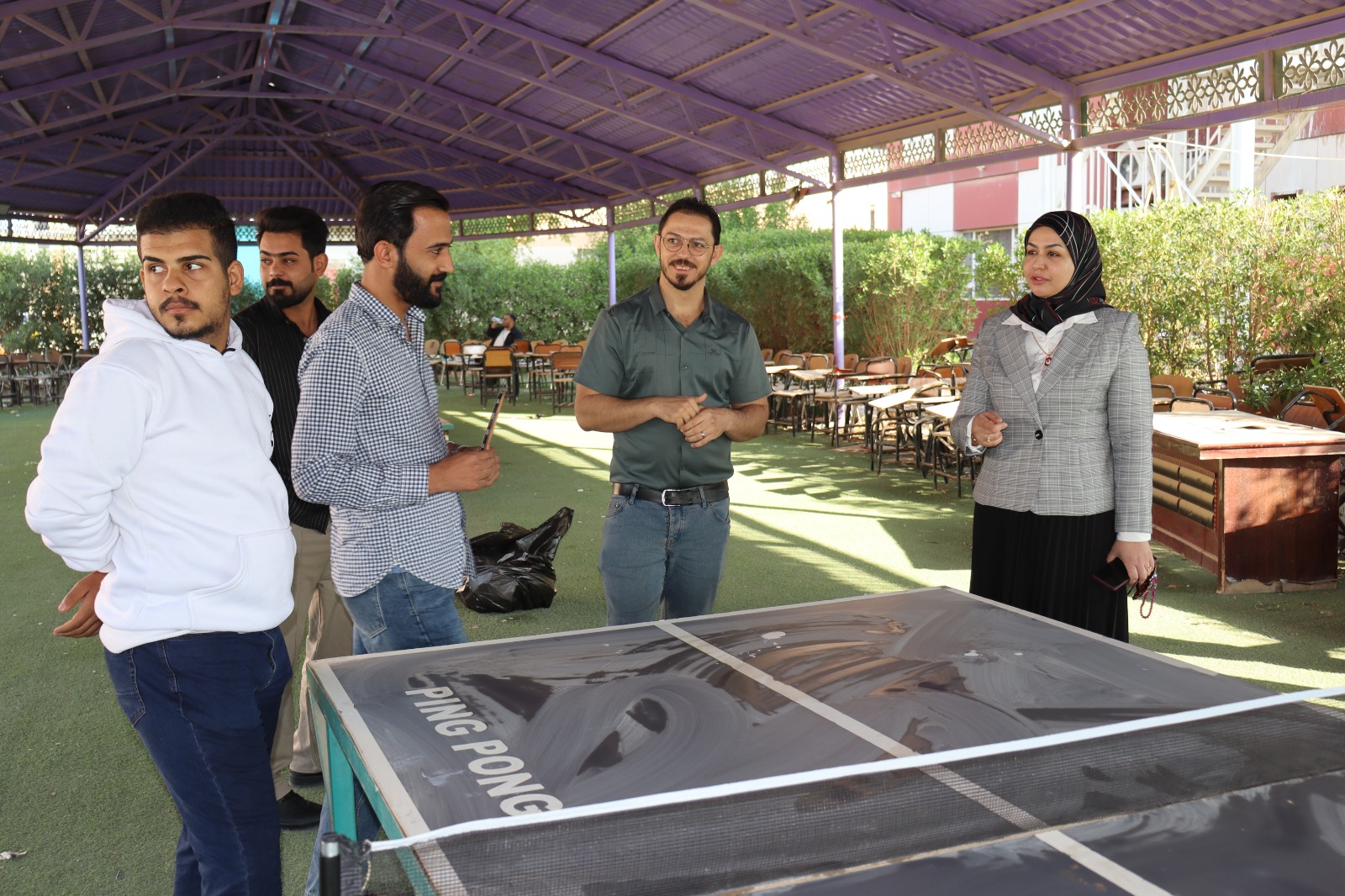 ضمن اهتمام كلية التربية للعلوم الصرفة بالأنشطة الطلابية ودعم المواهب الرياضية، شاركت عميد الكلية الأستاذ الدكتورة تيسير عبد الإله الحسيني تدريبات فريق الكلية لكرة المنضدة، في أجواء حملت روح الحماس والتفاعل الإيجابي بين الطلبة والهيئة التدريسية.