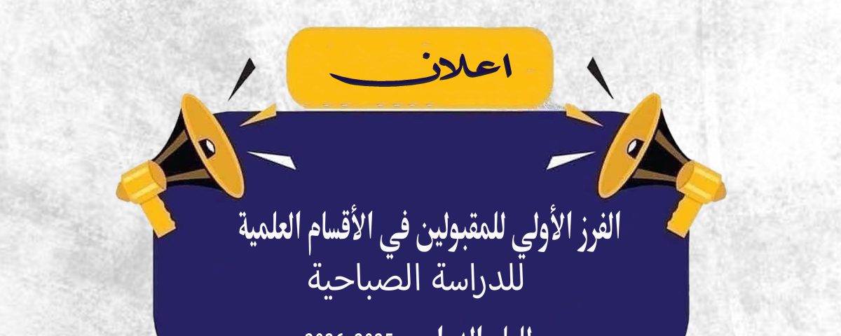 2025-11-20تعلن كلية التربية للعلوم الصرفة عن صدور نتائج الفرز الأولي للطلبة المقبولين في الأقسام العلمية للعام الدراسي 2025–2026. للدراسة الصباحية