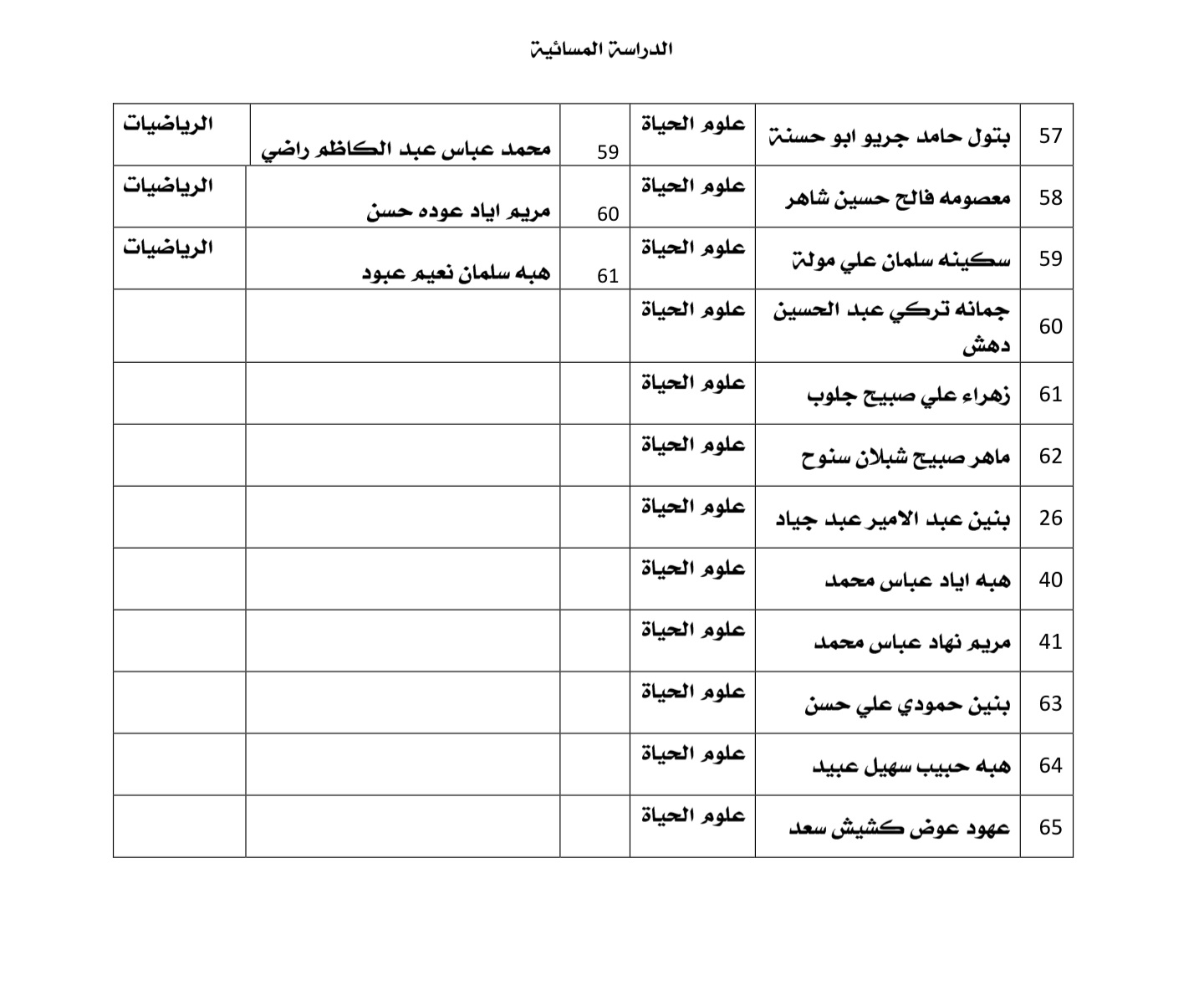مع تمنياتنا للجميع بعامٍ دراسي مليء بالنجاح والتوفيق.للدراسة المسائية