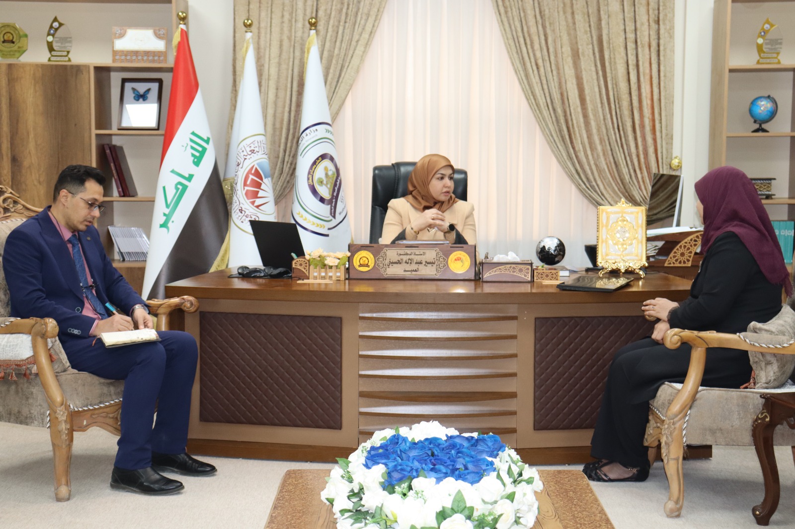 عقدت عميد كلية التربية للعلوم الصرفة بجامعة المثنى الأستاذ الدكتورة تيسير عبد الإله الحسيني ، اجتماعًا مع كوادر وحدة الإرشاد النفسي الجامعي في الكلية ، بحضور معاون العميد للشؤون العلمية الأستاذ المساعد الدكتور ارشد ناجي حسين والدكتورة نادية حسين والست فاطمة قاسم ، وذلك لمناقشة البرامج والأنشطة الإرشادية التي تهدف إلى دعم الطلبة وتعزيز البيئة التعليمية.