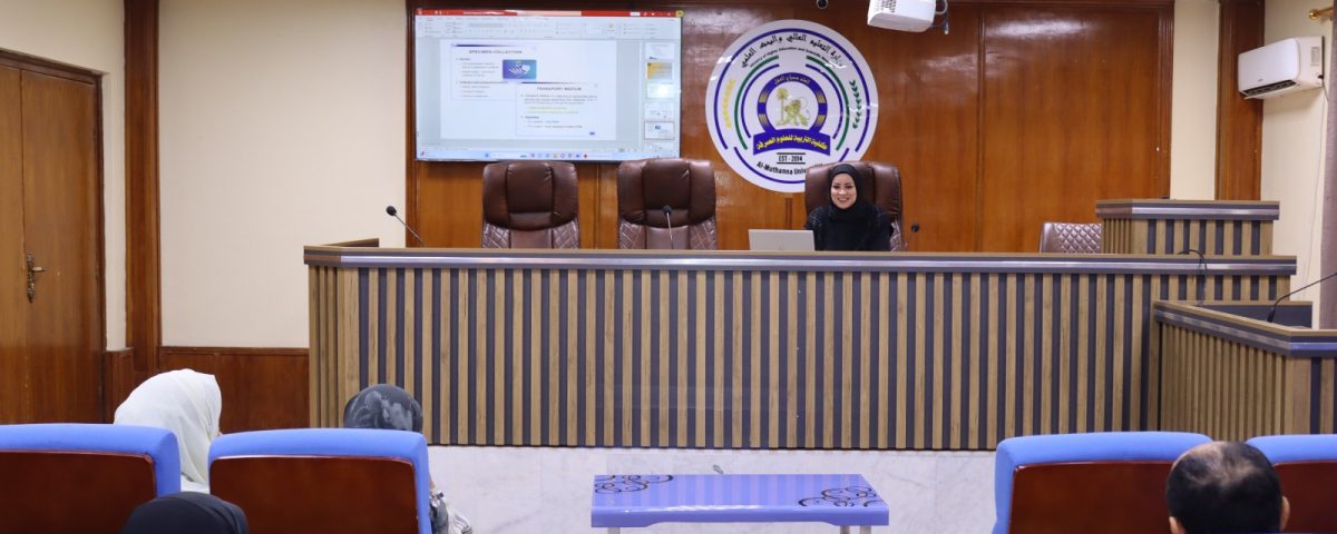 بإشراف السيدة عميد كلية التربية للعلوم الصرفة بجامعة المثنى الأستاذ الدكتورة تيسير عبد الإله الحسيني أقام قسم علوم الحياة في الكلية ورشة علمية بعنوان isolation and identification methods