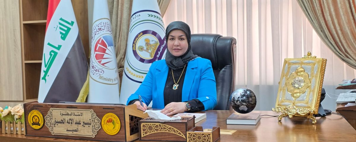 تتقدم عمادة كلية التربية للعلوم الصرفة بجامعة المثنى متمثلة بعميدها الأستاذ الدكتورة تيسير عبد الإله الحسيني بأحلى التهاني والتبريكات الى اساتذة وطلبة ومنتسبي الكلية وجميع العراقيين ، متمنيا للجميع عاماً جديداً زاهراً بالأمن والأمان وزوال كل ما يعكر صفو الحياة للعراقيين على امتداد ارض الوطن وتحقيق الاماني للجميع .