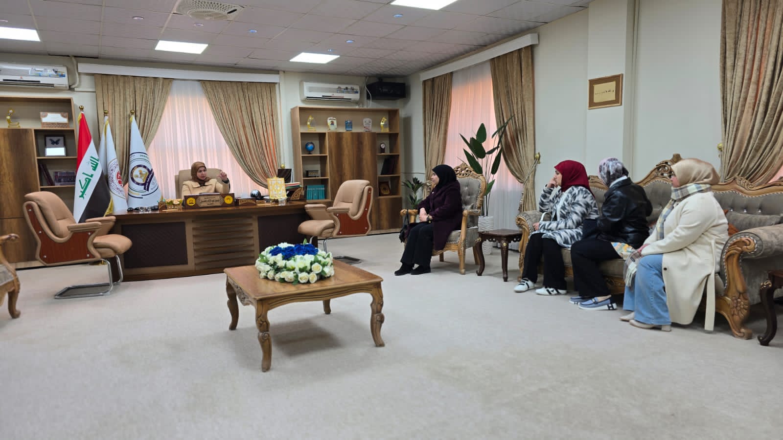 التقت السيدة عميد كلية التربية للعلوم الصرفة بجامعة المثنى الأستاذ الدكتورة تيسير عبد الإله الحسيني ، بطلبة الدراسات العليا ، وذلك في إطار حرصها المتواصل على متابعة شؤون الطلبة والاستماع إلى احتياجاتهم وتوفير بيئة تعليمية محفزة تدعم مسيرتهم الأكاديمية.