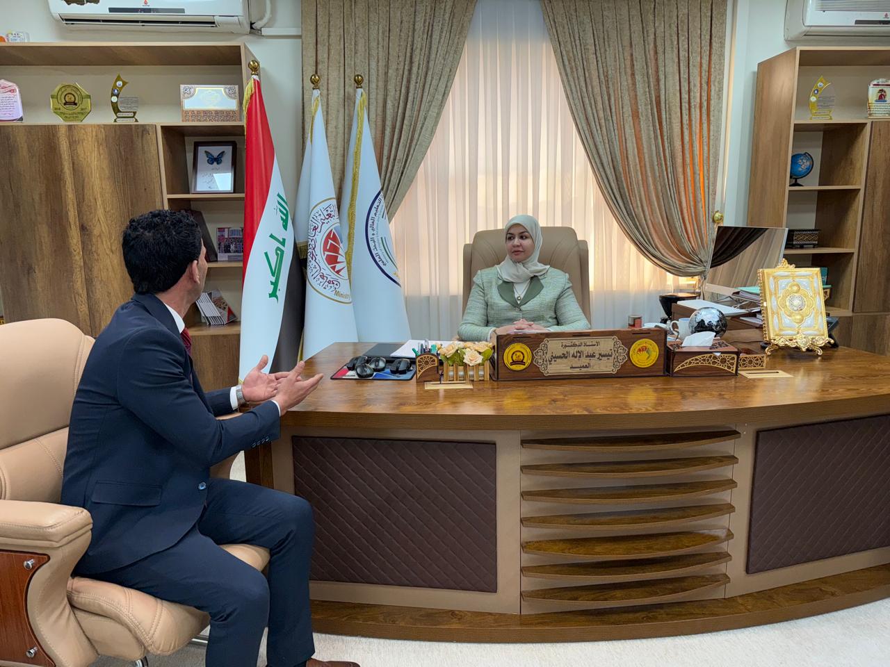 التقت السيدة عميد كلية التربية للعلوم الصرفة بجامعة المثنى الأستاذ الدكتورة تيسير عبد الإله الحسيني وضمن جدول اللقاءات الأسبوعية المباشرة ، عددا من التدريسيين.