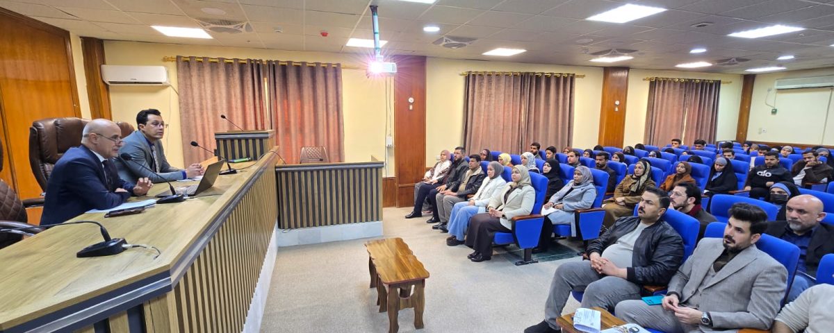 ألقاها المهندس يوسف سوادي جبار معاون المحافظ للشؤون الزراعة ومعاون العميد للشؤون العلمية الأستاذ الدكتور ارشد ناجي حسين وجرت الندوة على القاعة المركزية في الكلية بحضور رؤساء الأقسام العلمية.