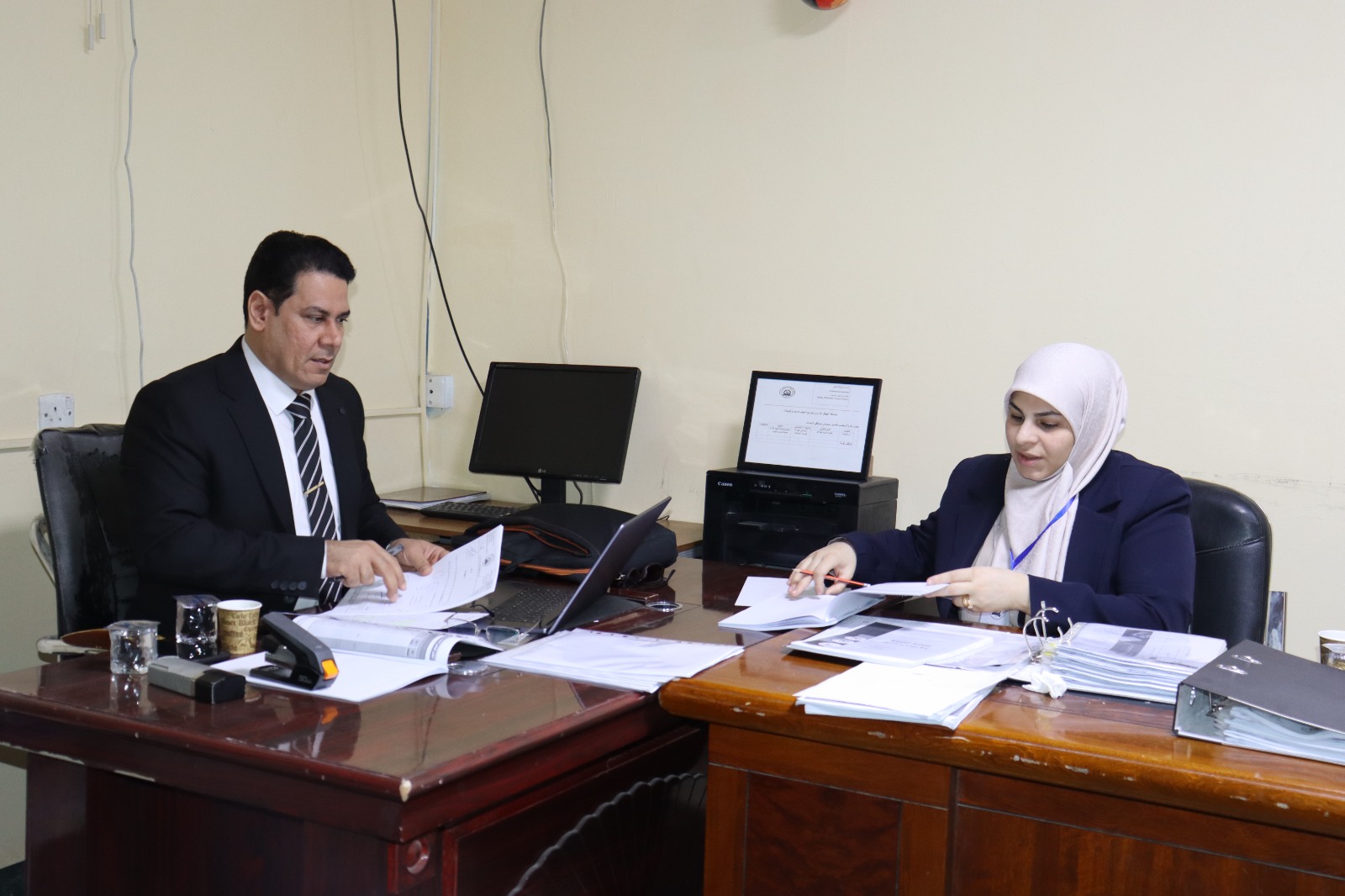 شملت زيارة الفريق الوزاري جولات ميدانية تفصيلية للاطلاع على مدى توفر المتطلبات والمعايير المعتمدة في الاقسام العلمية في الكلية.