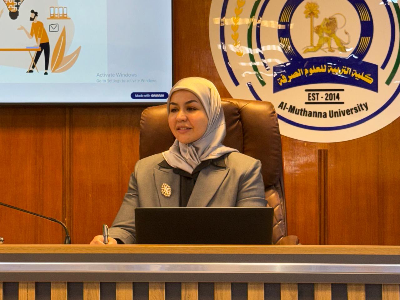 اختتمت كلية التربية للعلوم الصرفة بجامعة المثنى ، وبالتعاون مع مركز التعليم المستمر في رئاسة جامعة المثنى ، الدورة التدريبية لطرائق التدريس التخصص التطبيقي المحدثة نحو التعليم المدمج للأسبوع الأول وللتخصصات كافة التي حاضرت فيها عميد كلية التربية للعلوم الصرفة الأستاذ الدكتورة تيسير عبد الإله الحسيني بحضور مساعد رئيس الجامعة للشؤون العلمية الأستاذ الدكتور علي موسى رشيد.