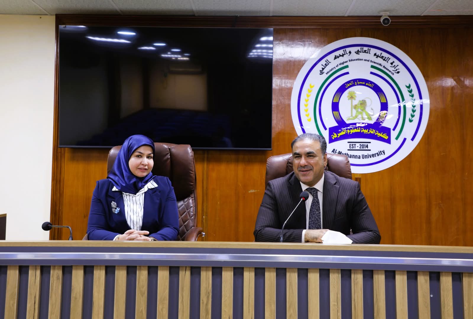التقى رئيس جامعة المثنى الأستاذ الدكتور حسين كامل الشاهر الملاك التدريسي لكلية التربية للعلوم الصرفة وأقسامها العلمية وكان في استقباله الأستاذ الدكتورة تيسير عبد الإله الحسيني عميد كلية التربية للعلوم الصرفة.