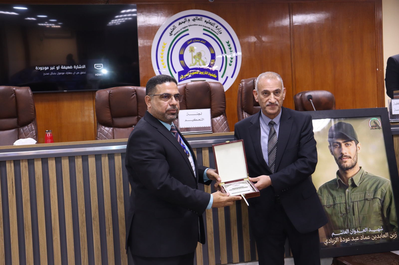 كما شهد التكريم والد الشهيد من قبل الأستاذ الدكتورة تيسير عبد الإله الحسيني ، عميد كلية التربية للعلوم الصرفة ، تعبيرًا عن الاعتزاز بتضحيات الشهداء وتقديرا لعوائلهم الكريمة.