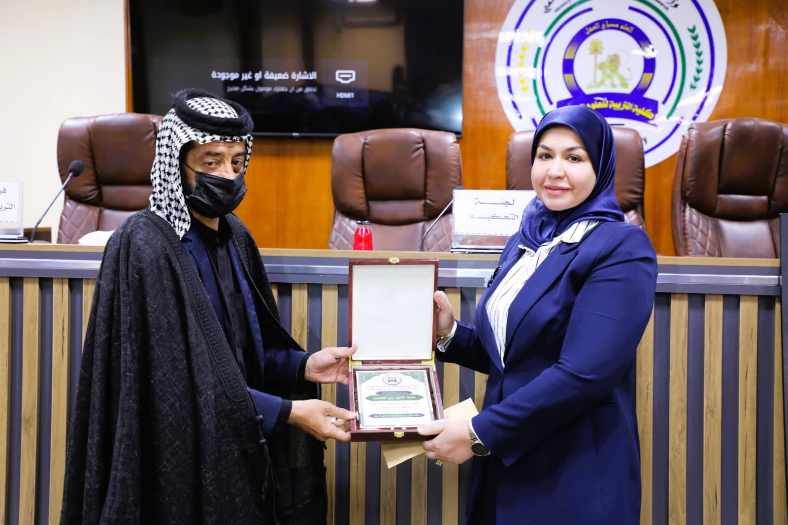 وفي ختام المسابقة، كرّمت عميد الكلية الطلبة الفائزين والمشاركين، تقديرًا لجهودهم وتحفيزًا لهم على مواصلة العطاء العلمي.