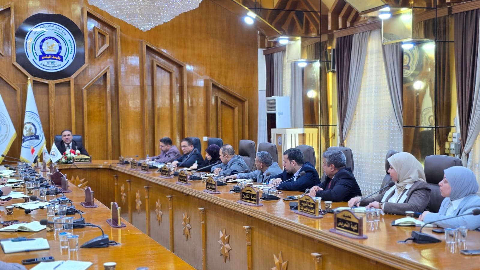 وشهد الاجتماع استعراض الخطط العلمية للعام الدراسي الحالي، ومراجعة البرامج الأكاديمية المعتمدة، فضلا عن مناقشة آليات تطوير المناهج الدراسية بما ينسجم مع متطلبات وزارة التعليم العالي والبحث العلمي، ويعزز من جودة المخرجات التعليمية. كما تناول المجلس أولويات البحث العلمي وسبل دعم النشر الأكاديمي الرصين، بما يسهم في رفع تصنيف الجامعة على المستويين المحلي والدولي.