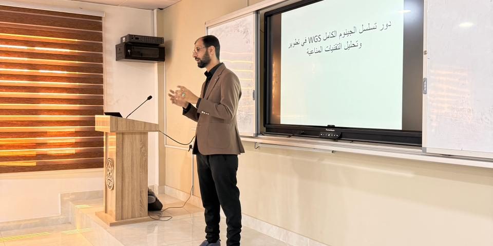 هدفت الورشة إلى تعريف المشاركين بأساسيات وتطبيقات التقنيات المناعية وتقنيات الجينوم الكامل (Whole Genome)، وبيان دورها في فهم العلاقة بين الأحياء المجهرية والفسلجة (وظائف الأعضاء)، من خلال استكشاف كيفية تحليل الاستجابة المناعية والتغيرات الجينية للكائنات الدقيقة وتأثيرها على وظائف الجسم المختلفة.