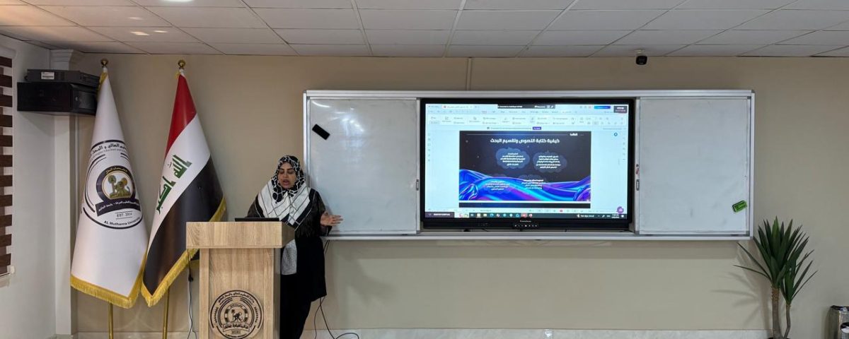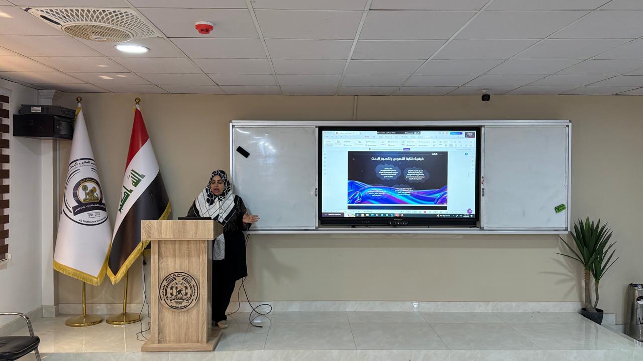 بإشراف السيدة عميد كلية التربية للعلوم الصرفة بجامعة المثنى الأستاذ الدكتورة تيسير عبد الإله الحسيني أقامت وحدة التعليم المستمر في الكلية دورة تدريبية بعنوان (إليه كتابه البحث العلمي في برنامج الاتكس)