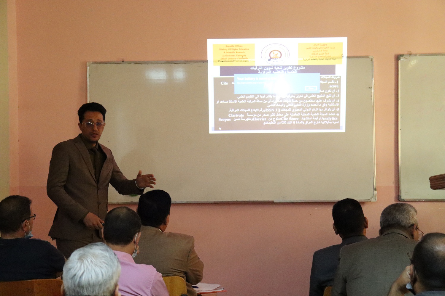 2022-04-19بحضور واشراف السيد عميد الكلية الأستاذ الدكتور جواد كاظم مريح نظمت كلية التربية للعلوم الصرفة دورة علمية بعنوان (شرح مفصل لفقرات الترقيات العلمية) حاضر فيها ا.د علي عباس عجيل و ا.م.د ياسر دخيل كريمش الاسدي و ا.م.د ارشد ناجي حسين تهدف الدورة الى تقديم شرح مفصل لدليل الترقيات العلمية مستهدفا كافة التدريسيين واللجان العلمية.