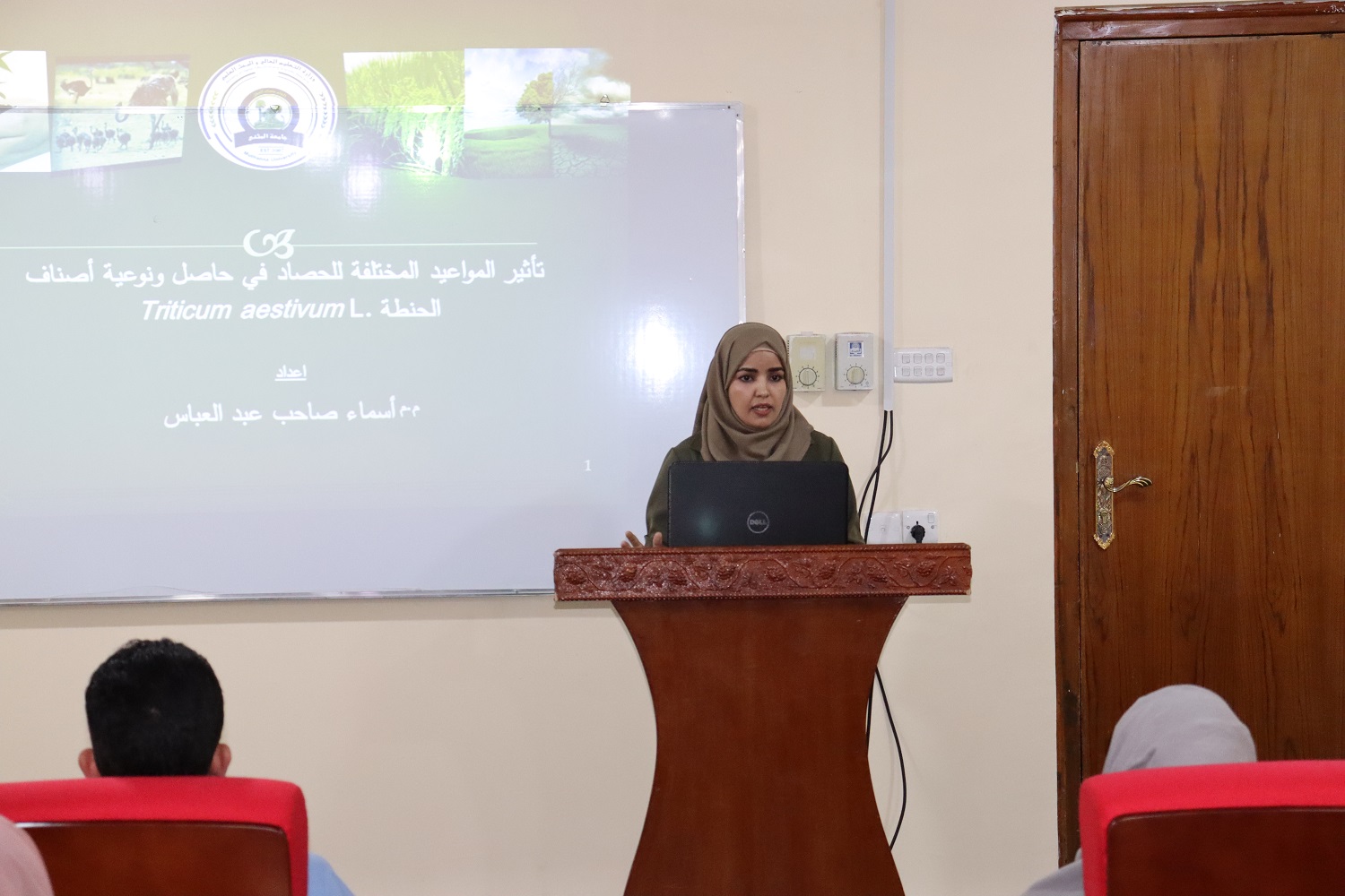 حلقة نقاشية بعنوان ( تأثير مواعيد الحصاد على حاصل ونوعية اصناف الحنطة . aestivum L. Triticum ) في كلية التربية للعلوم الصرفة