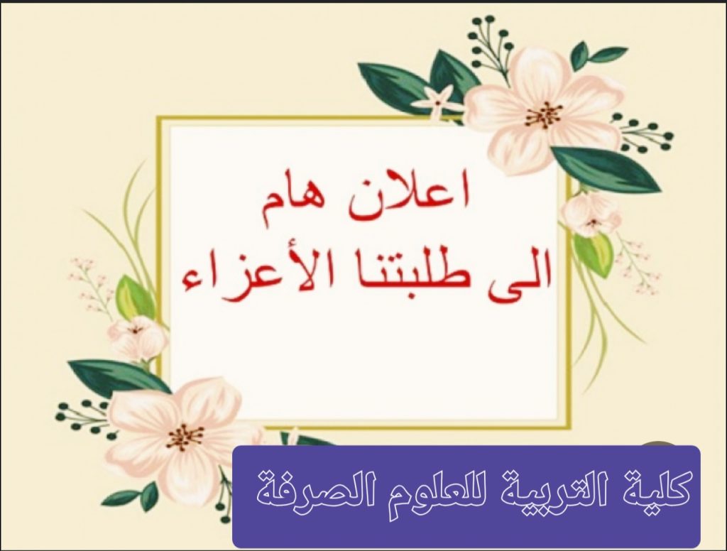 اعلان الى طلبتنا الاعزاء في المرحلة الاولى للدراسة الصباحية ننشر لكم توزيع الطلبة حسب الاقسام العلمية بعد التحديث