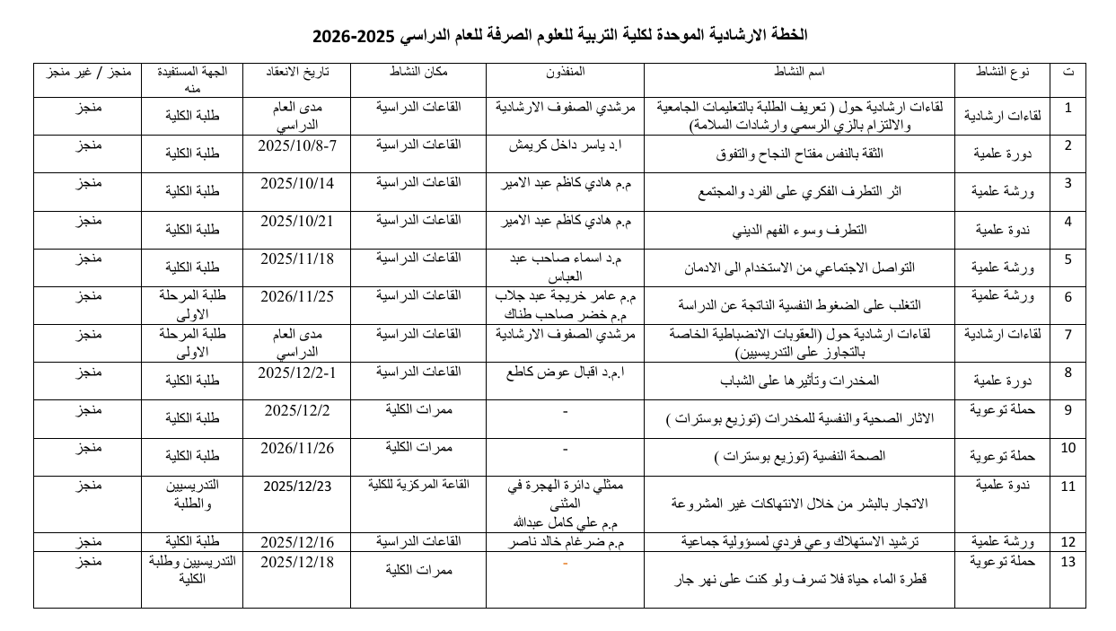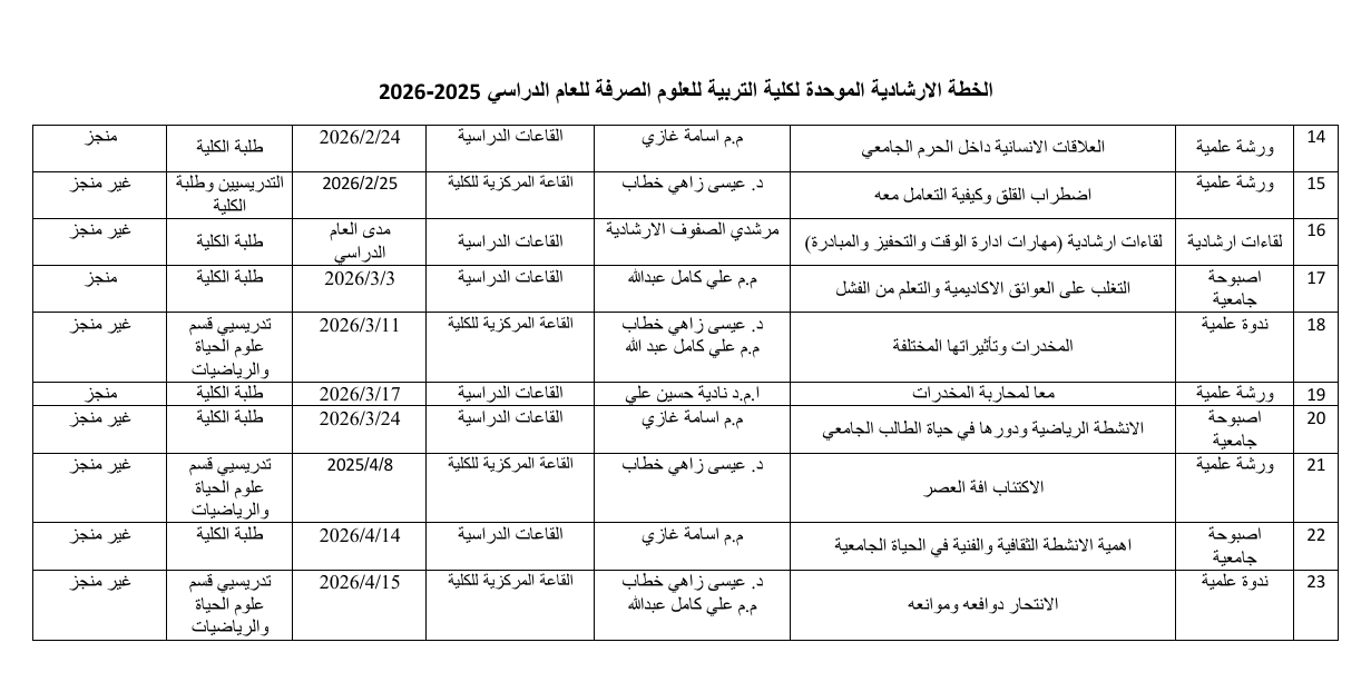 رسالة الإرشاد النفسي الجامعي في الكلية